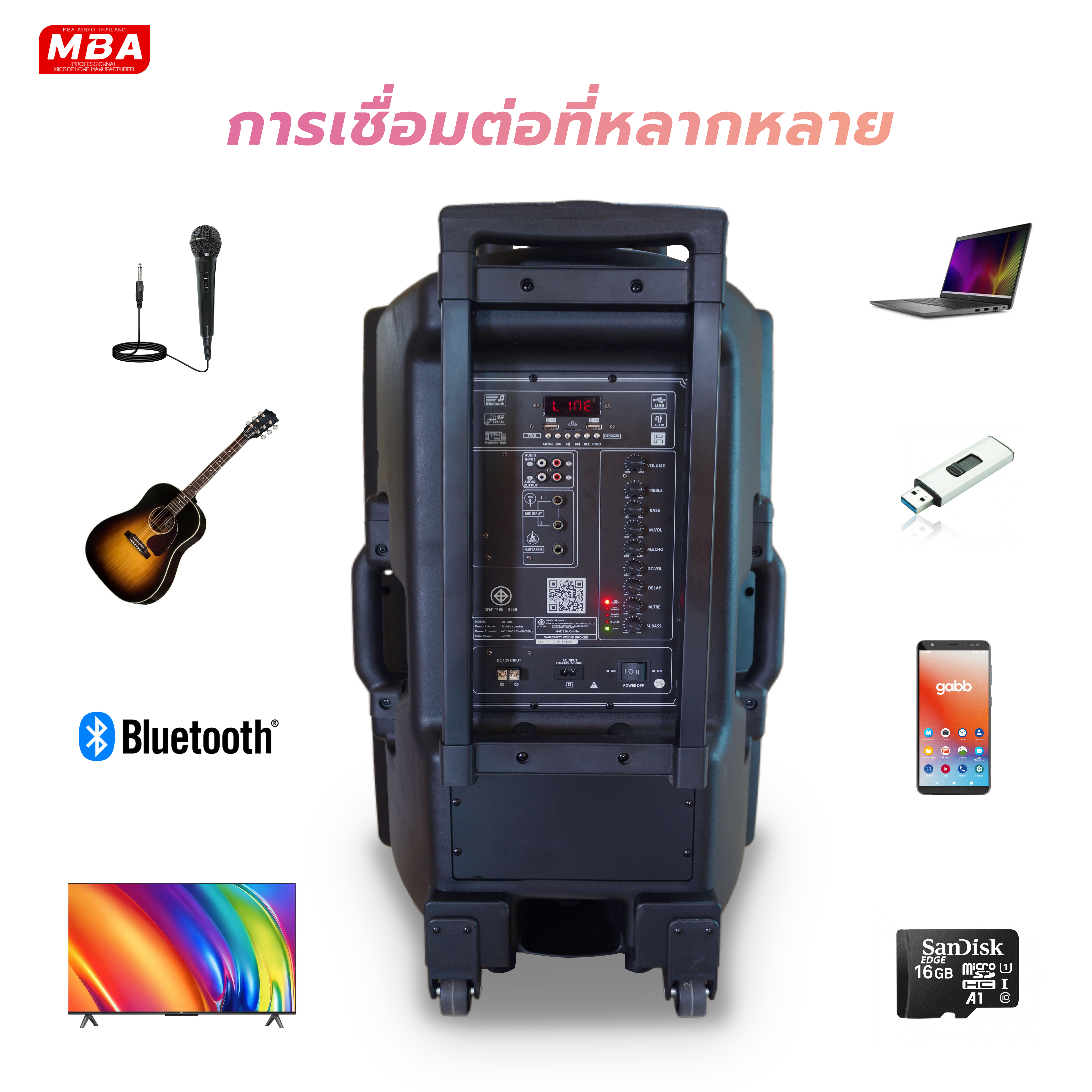 MBA AUDIO THAILAND ลำโพงล้อลาก 18 นิ้ว MBA รุ่น 18BT พร้อมไมค์ลอยคู่ คลื่น UHF แท้ รับรองจาก กสทช.